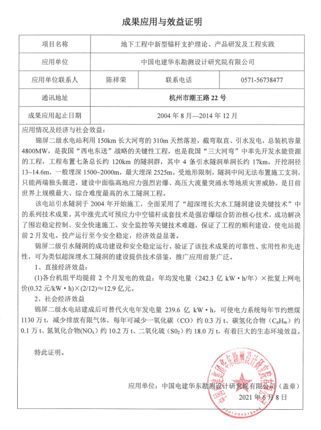在腐蝕環(huán)境中可實現(xiàn)100年以上的使用壽命,填補了此項技術(shù)的國內(nèi)空白。項目在2009年膠州灣海底隧道已得到成功應(yīng)用,至今效果明顯。膠州灣二隧道正在應(yīng)用中。更是將在海南海底通道、以及煙大海底隧道、臺灣海峽隧道等開挖支護中提供有力保障。